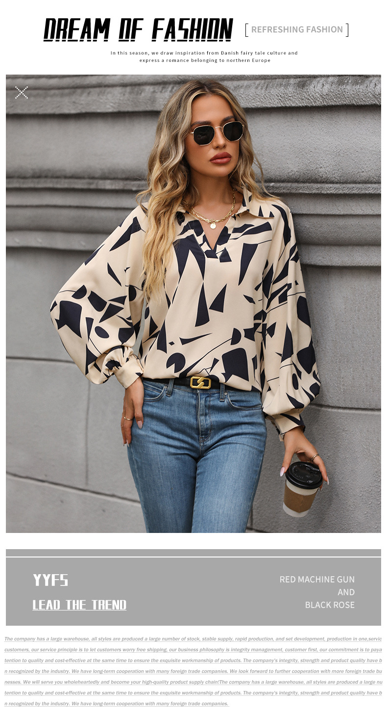 Spring and Autumn Hot selling European and American Fashion Women’s Long sleeved Printed Shirt